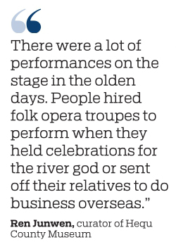 "There were a lot of performances on the stage in the olden days. People hired folk opera troupes to perform when they held celebrations for the river god or sent off their relatives to do business overseas," Ren said.