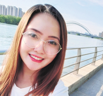 Sharina Mae Mendoza Piso takes a selfie near the Fenhe Bridge.