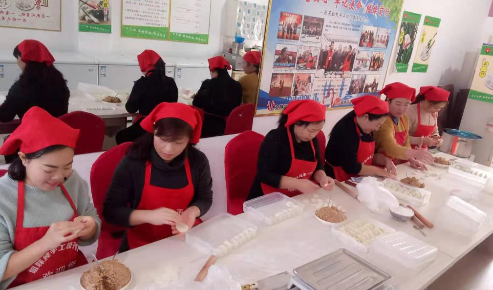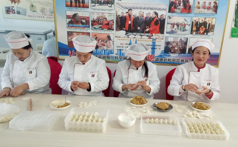 為了擴大知名度,我通過石樓槐花節、豐收節等活動,做槐花餃子、野菜餃子等特色餡餃子,開展各種促銷活動,利用各種機會免費讓大家品嘗。功夫不負有心人,由于味道可口分量足,我的餃子慢慢打開了市場,接到了一個個訂單。我自己一個人忙不過來,就吸納村里的貧困戶姐妹到我店里幫忙,大家一起創業。