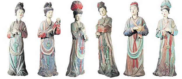 The statues of maids in the Hall of the Sacred Mother are sculpted in a vivid and natural style. QIU PING / FOR CHINA DAILY