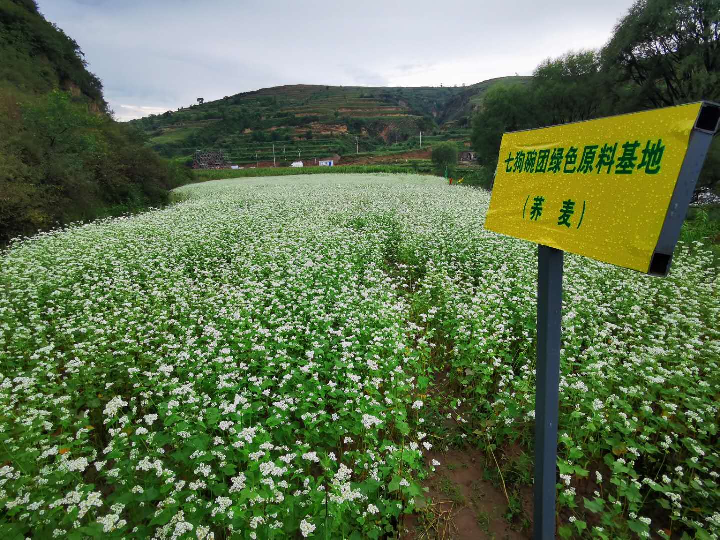蕎麥種植基地里,老農們正在觀察蕎麥花的長勢,臉上不時地露出笑臉。他們是呂梁神歸旅游開發有限公司的職員,主要負責公司基地蕎麥和朝天椒的種植管護。這些蕎麥和朝天椒待秋后成熟,將被離石區七狗食品有限公司統一收購。
