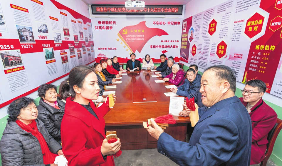 Residents in Taonan No 2 community in Yingze district, Taiyuan, study the guidelines proposed by the Fifth Plenary Session of the CPC Central Committee.