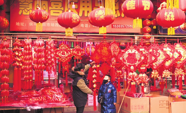 Residents shop for Spring Festival decorations at a store in Houma city.LI ANYUN/FOR CHINA DAILY