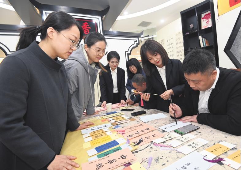 Calligraphers in Taiyuan express their best wishes for the 100th anniversary of the founding of the Communist Party of China.