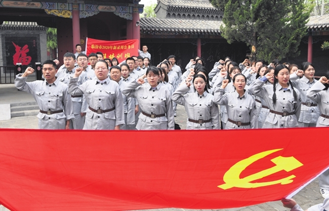 Party members in Linfen city attend a training session for the study of CPC history. LI HUWEI / FOR CHINA DAILY