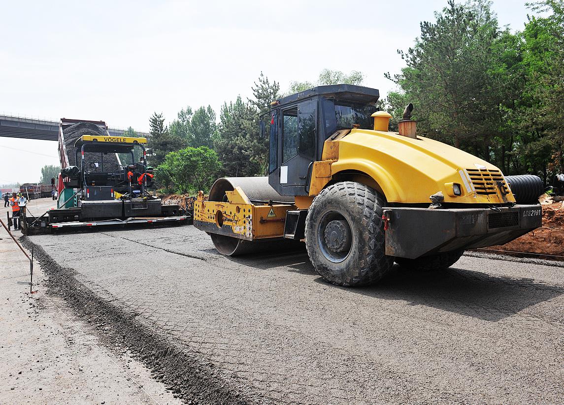 壓路車、碾壓機在施工現場同時作業