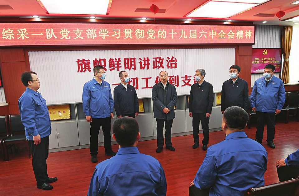 在山西焦煤集團,林武聽取企業學習貫徹黨的十九屆六中全會及省第十二次黨代表大會精神情況匯報,對焦煤集團改革發展的思路舉措、能源保供的責任擔當給予肯定,勉勵企業把準方向,步步為營,穩扎穩打,一年一個臺階向著一流企業邁進。他指出,國有企業是山西經濟高質量發展的中流砥柱,堅定不移聽黨話、矢志不渝跟黨走是企業發展的根本保證。要以黨的十九屆六中全會精神為指引,切實擔負起國有資產經營者、管理者、看護者職責,聚焦邁過“生存線”、達到“發展線”,在深化國企改革中加快“趕考”“補考”,強化成本管控和精益管理,實行分類核算和分類考核,培育塑造優秀企業文化,持續增強核心競爭力,為全方位推動高質量發展多做貢獻。西銘礦是焦煤集團一座擁有60多年歷史的現代化礦井,林武來到生產調度應急救援指揮中心,了解安全生產運行情況,通過視頻電話問候井下礦工,強調要把安全生產責任落實到基層、落實到班組、落實到每一名礦工。隨后,林武走進正在開展黨支部集體學習的綜采一隊黨員中間,強調要充分發揮基層黨組織戰斗堡壘和黨員先鋒模范作用,推動黨的十九屆六中全會精神進廠礦、進車間、進班組。沿著煤礦安全文化長廊,林武詳細了解安全生產教育、疫情防控、關愛職工身心健康等情況,看望慰問剛剛升井的28名夜班礦工,與大家一一親切握手。他動情地說,煤礦工人是國家現代化建設的功臣,要用心用情關心礦工,結合深入開展“我為群眾辦實事”實踐活動,幫助解決實際困難,讓大家安心生產幸福生活。
