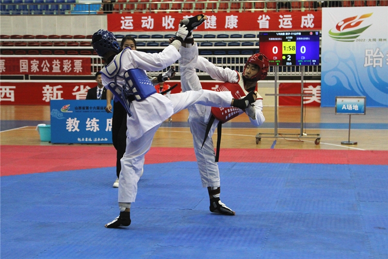 人民網太原6月2日電(記者雷昊)6月1日,山西省第十六屆運動會跆拳道比賽迎來首個比賽日,全省9市代表隊258名青少年在懷仁體育館集結,進行20個級別和團體項目的爭奪,向冠軍發起沖擊。