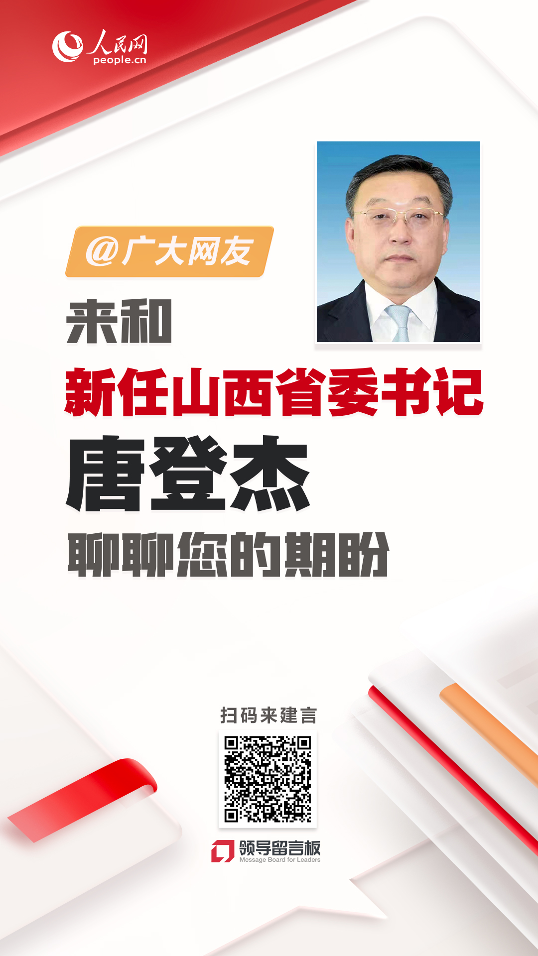 @廣大網友,來和新任山西省委書記唐登杰聊聊您的期盼