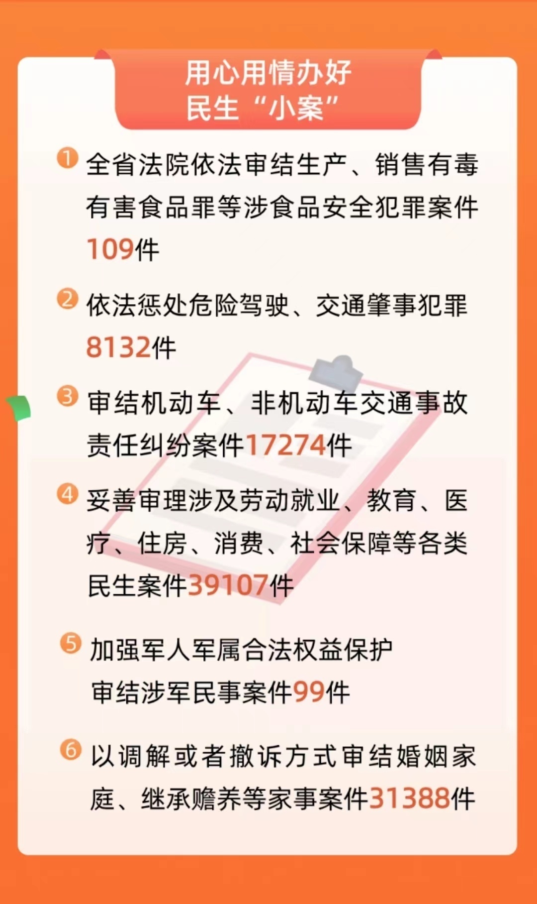 從個案審判到通過司法建議完善社會治理,提升群眾的幸福感、滿意度,山西法院持續行動。過去一年,山西法院妥善審理涉及勞動就業、教育、醫療、住房、消費、社會保障等各類民生案件39107件。審理撫養權、收養權等涉及未成年人家事案件3192件。