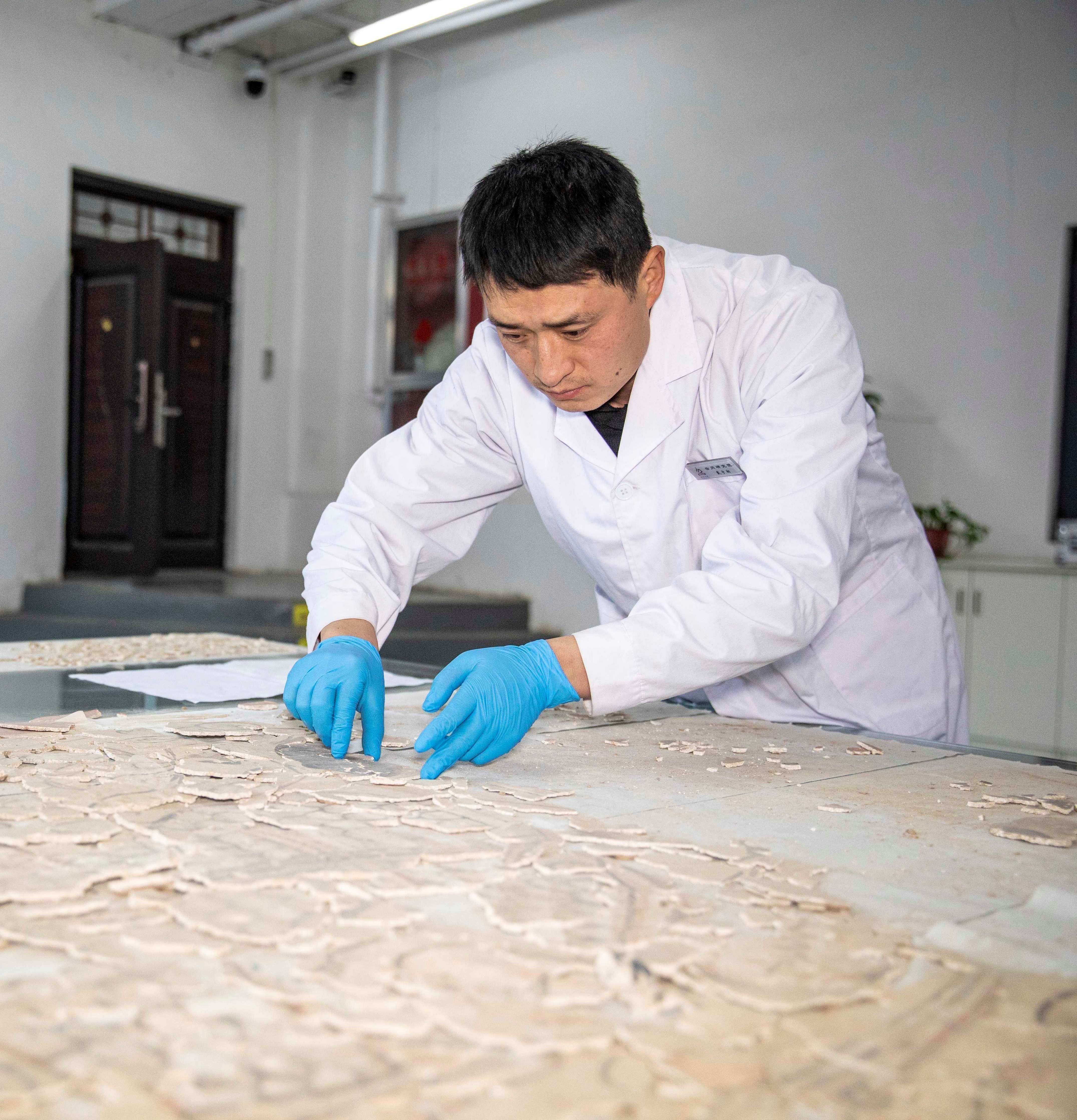 能不能修復如初?回到修復室,看著一堆碎成顆粒狀的殘片,戴宇翔心里沒底。每一步都要嚴格遵循壁畫修復的原則——保證文物的原真性,有依據的壁畫碎塊可以進行復原,沒有依據的絕不能憑想象“做美容”。任何一個環節出錯都可能使后續工作量呈現幾何式增加。
