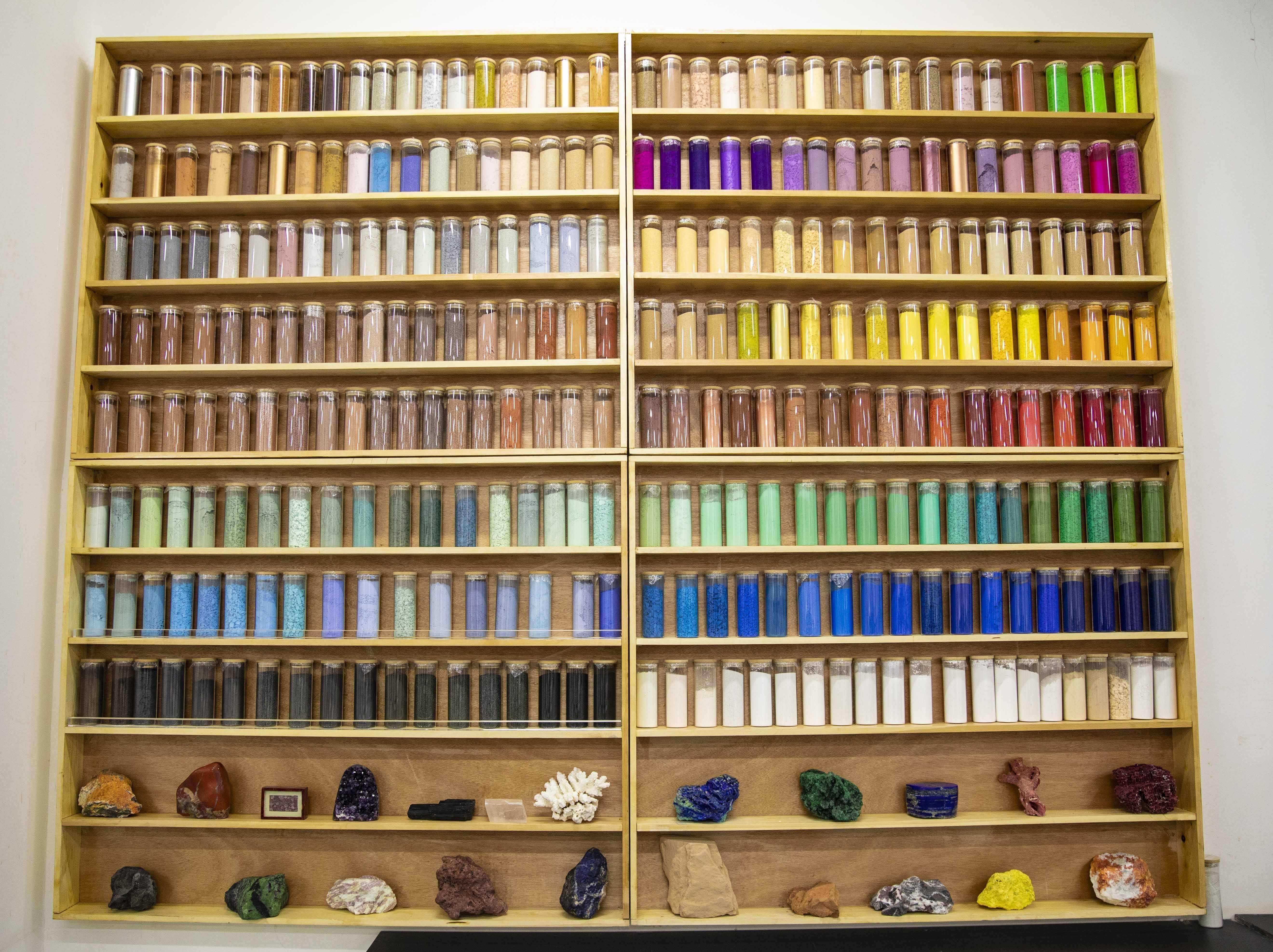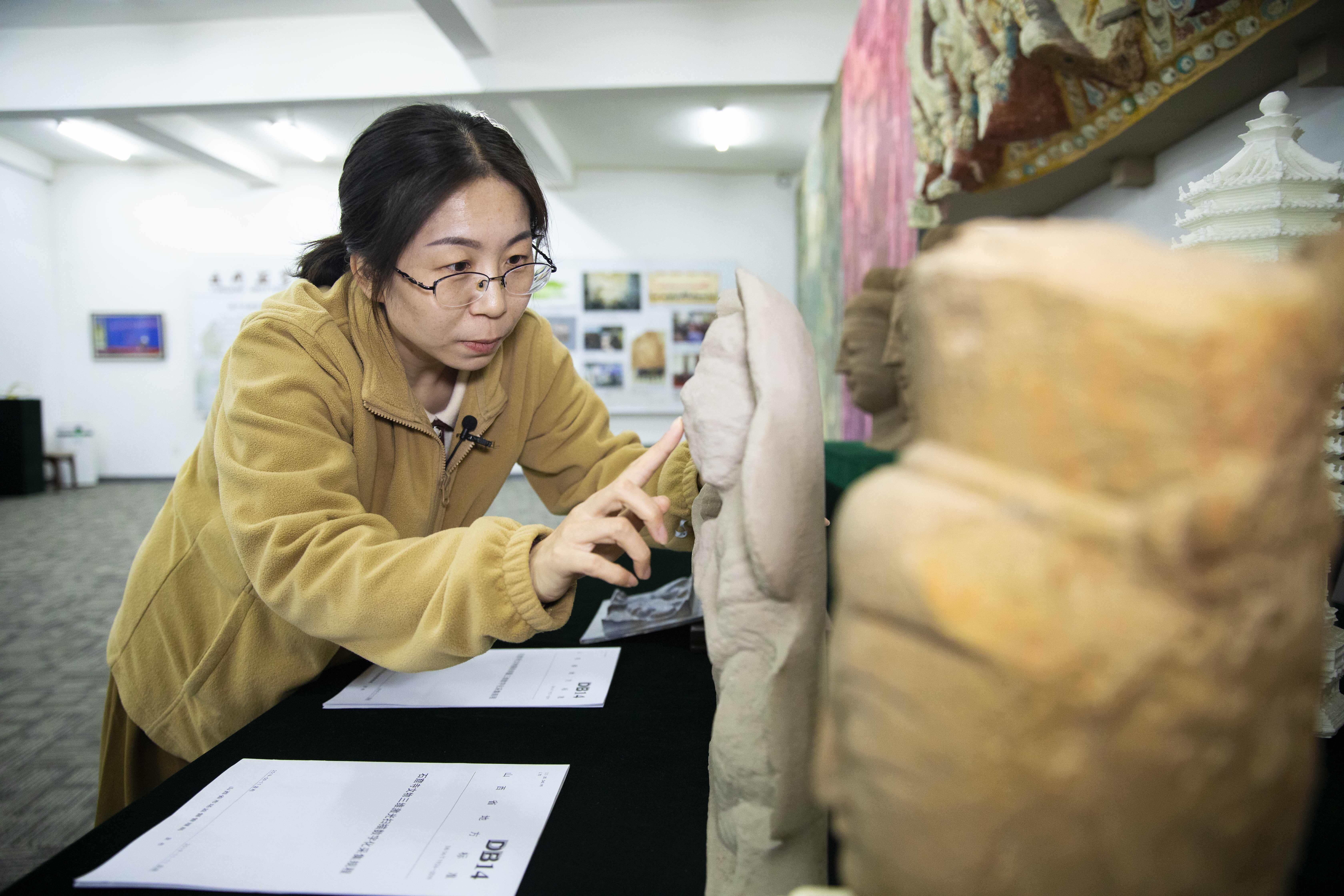 圖為云岡研究院壁畫修復室內的壁畫碎片。