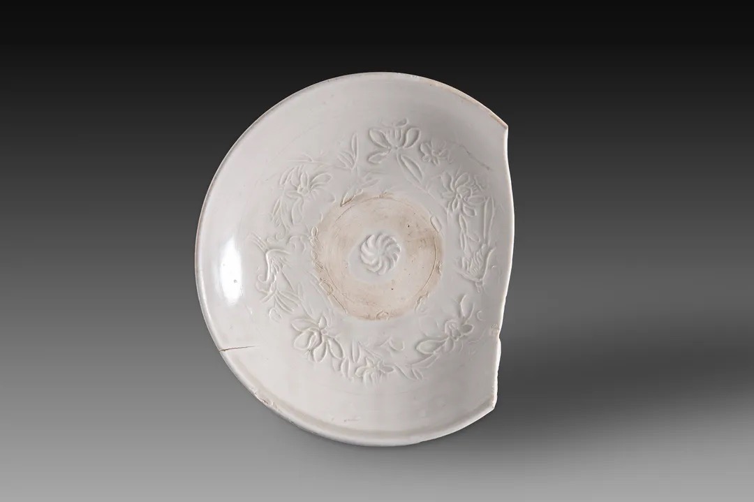 霍州窯出土的金代細白瓷印花淺盤(蓮紋)。山西省考古研究院供圖