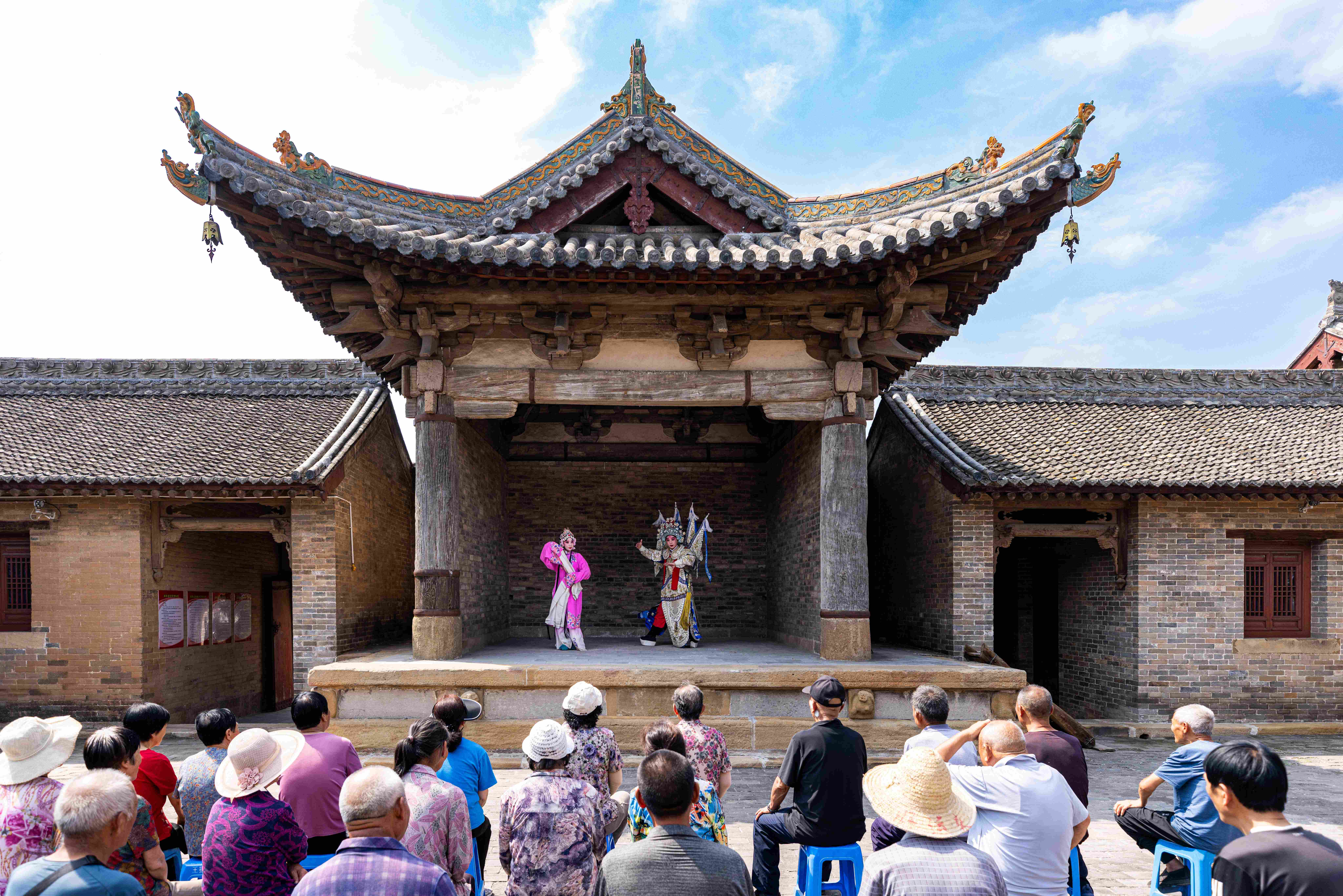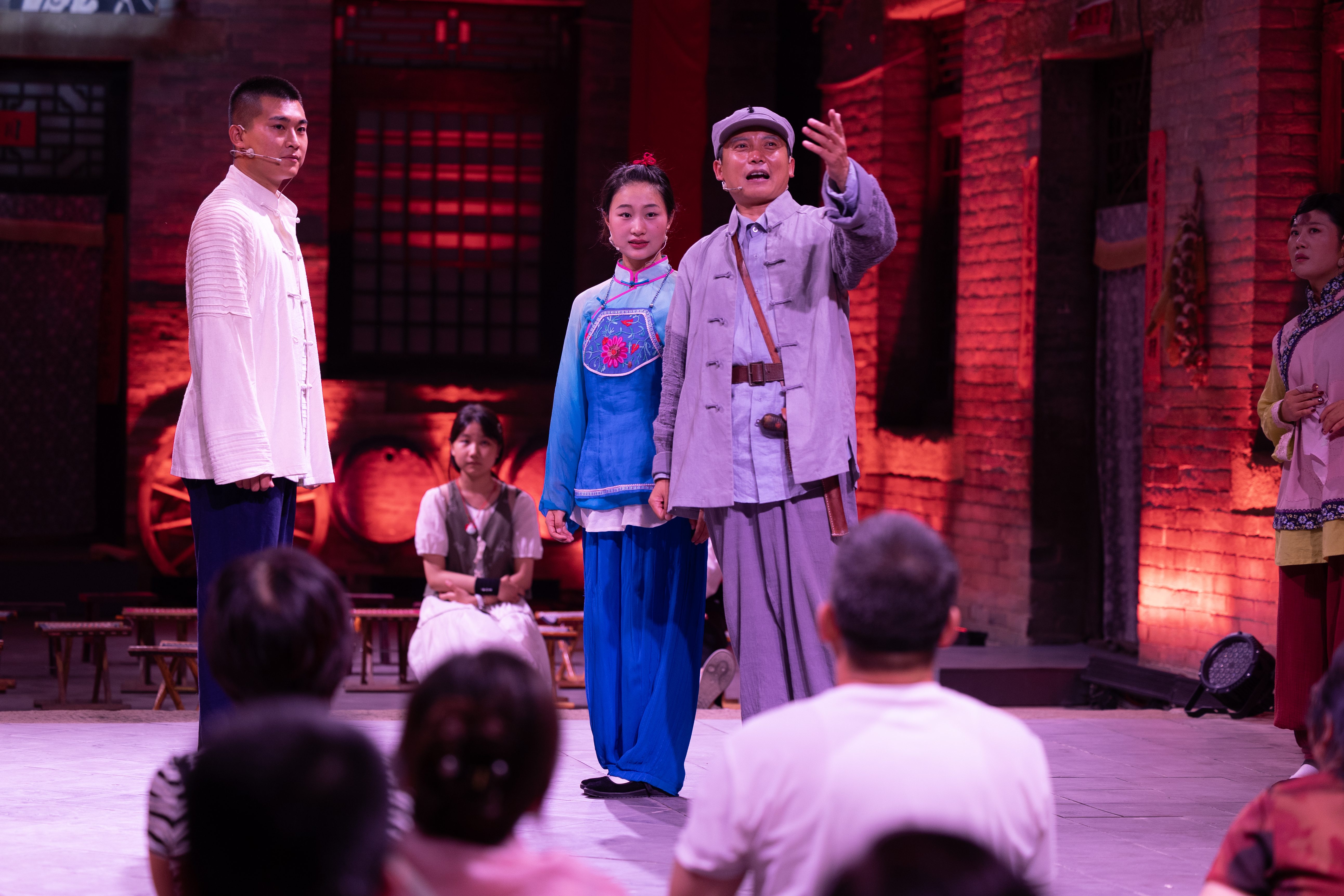 在高墻小院中、老舊的院房門口,演員不時穿梭演繹。蘇莊村是中國傳統村落,幾百年的四合院建筑成了沉浸式演出的天然舞臺。像這樣的村莊,在高平市這片古老的土地上,星羅棋布,如同一部史書,訴說著過往的輝煌與滄桑。