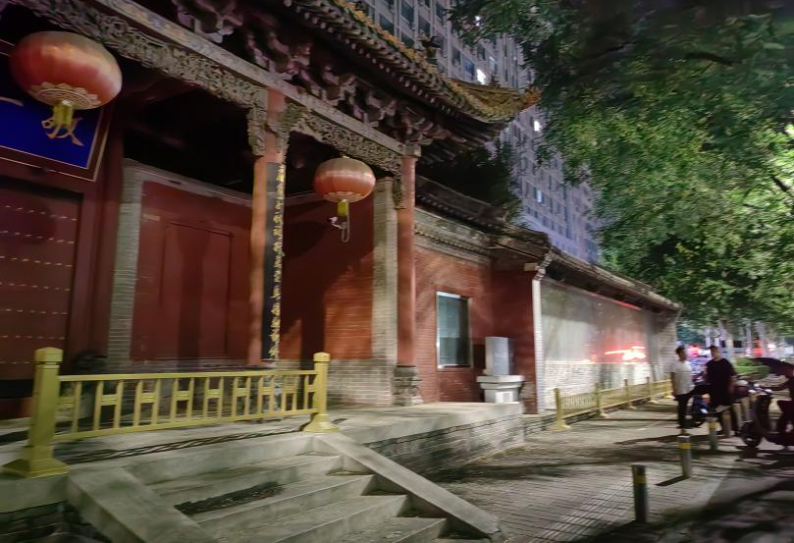 在敬一亭大門臺基前設置臨時圍欄,防止電動車、自行車隨意停放進出;在東西兩側耳房南墻外距離1.5米處也設置了臨時保護圍欄,確保停放車輛與建筑本體保持安全距離。