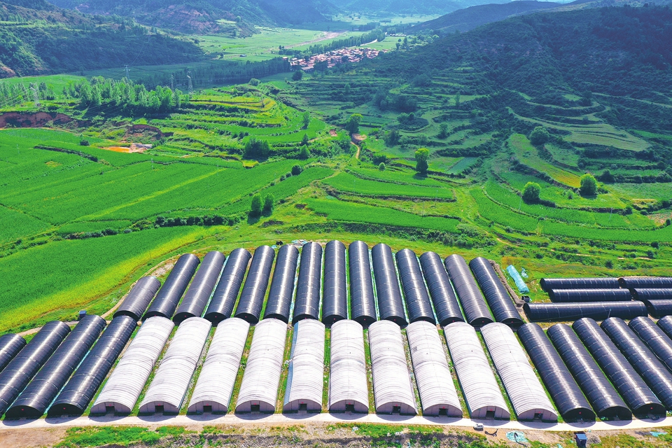 9月3日拍攝的沁源縣韓洪鄉食用菌產業示范園。近年來,韓洪鄉跨村整合資源,發展食用菌產業,通過“統一規劃、統一建設、統一經營、產權獨立、收益歸村”形式,實現政府、企業、集體、群眾多方共贏。園區現有大棚240棟,下一步將再建100棟,香菇、平菇達到500萬棒。張海 攝