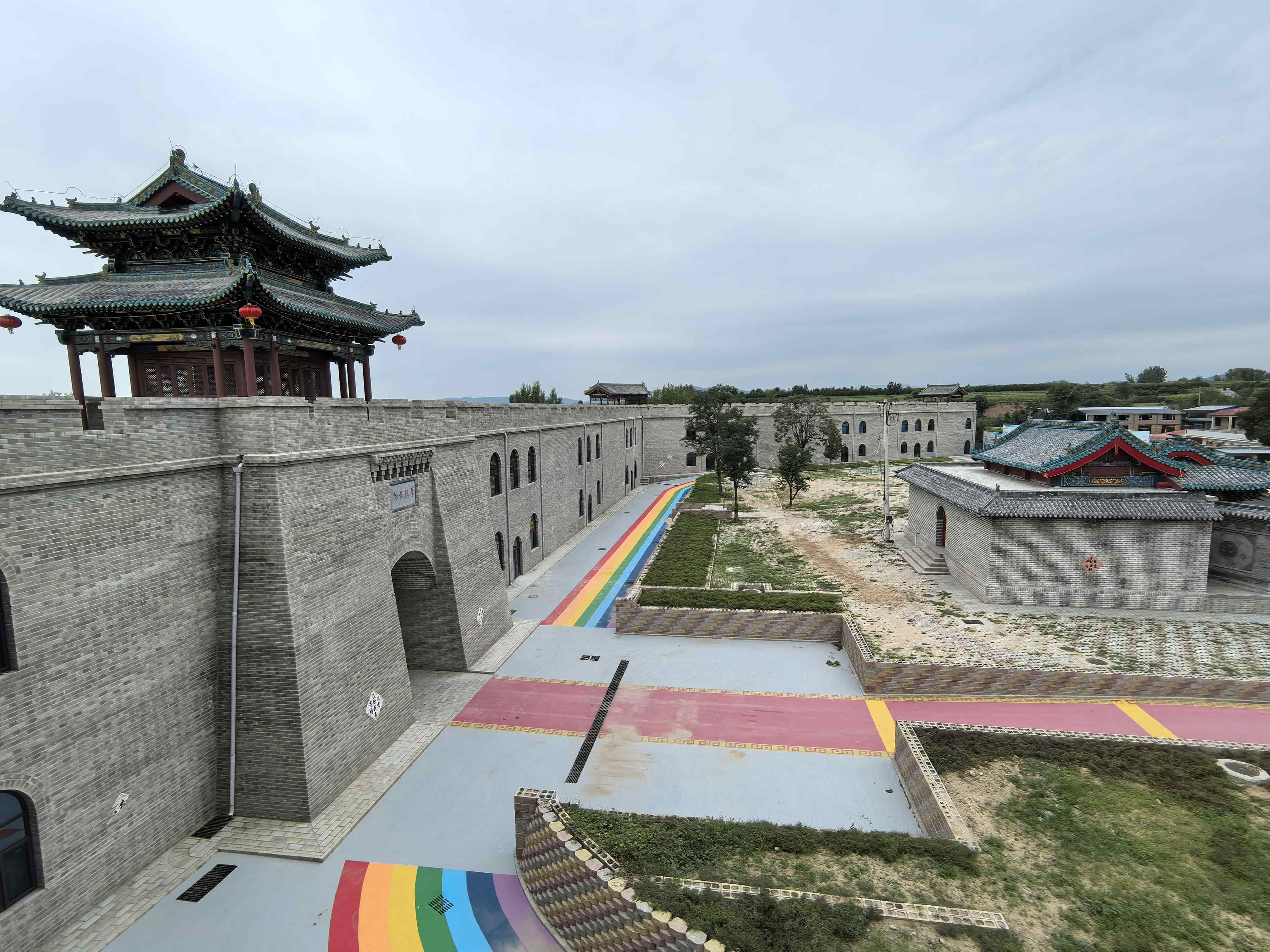 這個秋天,大盂鎮棘針溝村變得更美了。站在新建的城墻上,整個村莊盡收眼底——以紅色“繪”就的馬路為中軸線,白墻黛瓦的農家小院,錯落有致地排列在兩邊;平坦的鄉間小徑旁,綠樹成蔭……土墻變城墻,臭水溝變噴泉,整個村莊,景色如畫。而專屬于棘針溝村的城墻、廟宇、戲臺,彷佛留住了時光,散發著古老的韻味。
