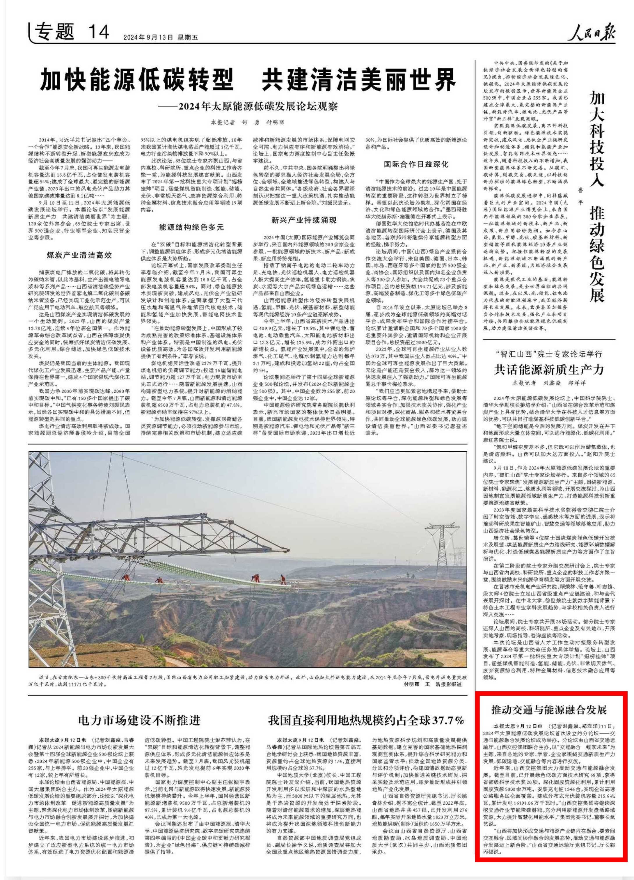 人民日報看山西 | 推動交通與能源融合發展