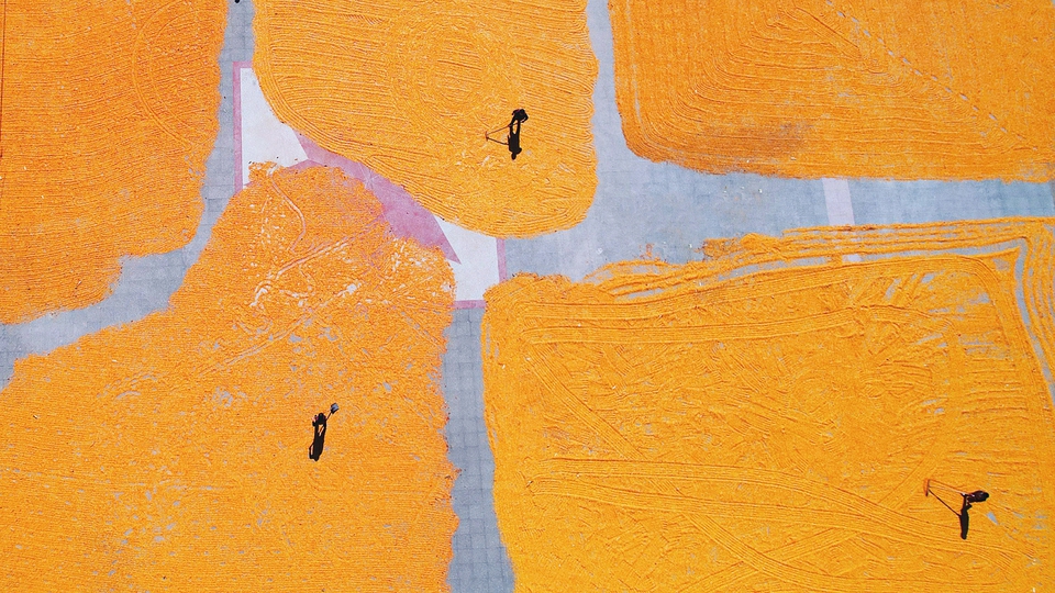 10月13日,村民正在垣曲縣古城鎮古城村晾曬新收獲的玉米。時下,古城村玉米迎來收獲季,村民們搶抓晴好天氣在空地處晾曬收獲的玉米,確保糧食顆粒歸倉。(崔松良攝)