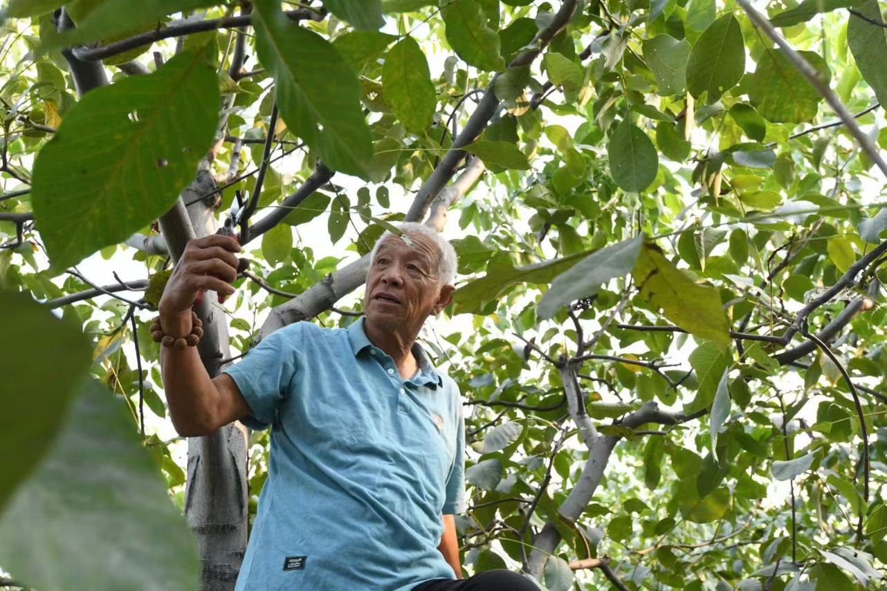 一手持剪刀,一手扶樹枝……深秋一大早,在山西汾陽栗家莊鄉協和堡村的核桃園內,協和核桃專業合作社理事長張效齊正在給果樹進行秋剪。