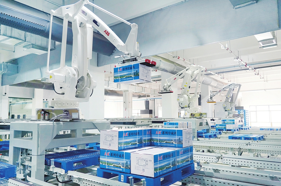 10月21日,山西華康藥業股份有限公司現代中藥科技產業園智能物流中心,機械臂在生產線上作業。該物流中心注重科技創新,打造多功能立體智能倉庫,可實現立庫貨位1.5萬余個,平庫倉容1萬余平方米,存儲成品30萬余件。常奇攝