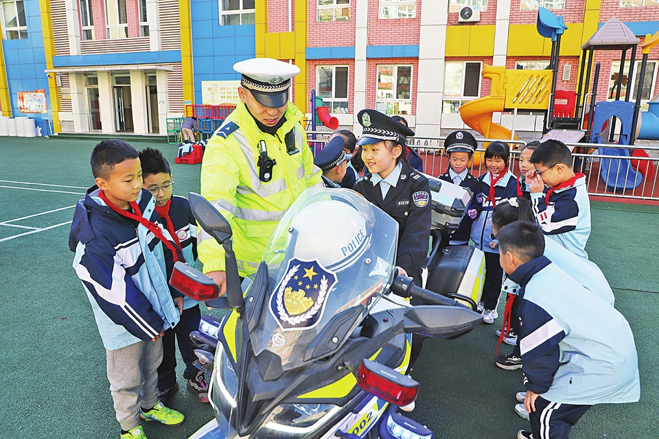 11月29日,太原市迎澤區建設路小學開展“交通安全知識進校園”活動,邀請迎澤區一大隊一中隊民警現場為孩子們講解交通安全知識,進一步強化孩子們的安全意識。(記者阮洋攝)