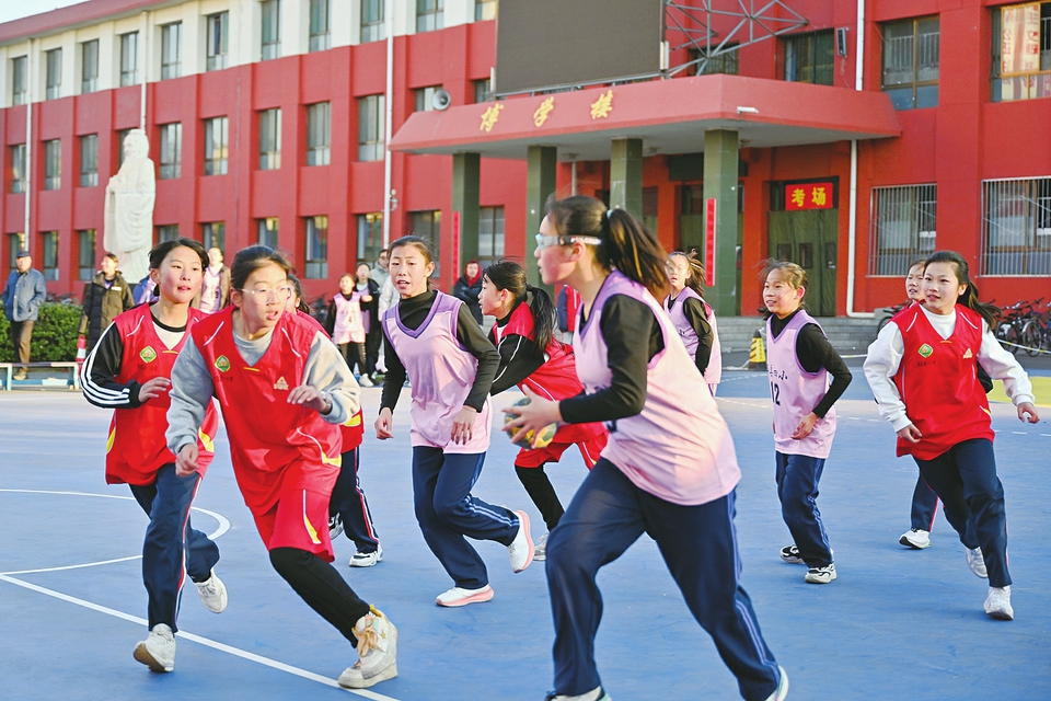 12月5日,祁縣中小學生手球比賽在祁縣二中舉行。隊員們奮勇拼搏、通力合作,盡情展示著手球運動的魅力。(范文靜攝)