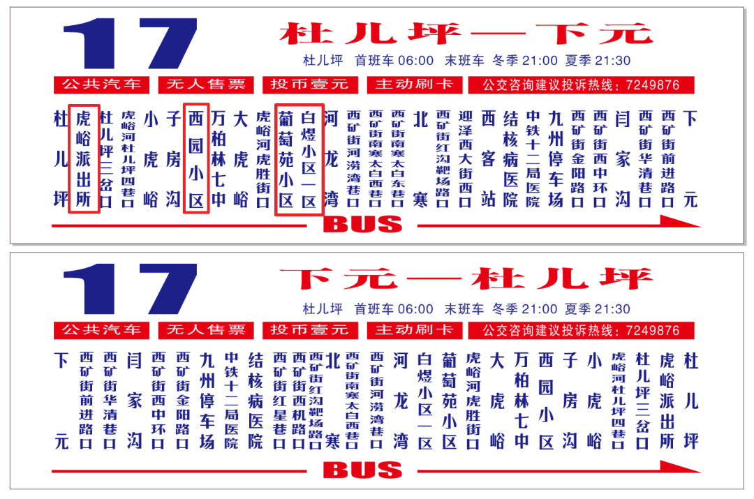 “之前17路有些站名不規范,希望恢復原線時能一并修改。如‘電車站’改為‘葡萄苑’,‘招呼站’改為‘虎峪派出所’?!?/p>