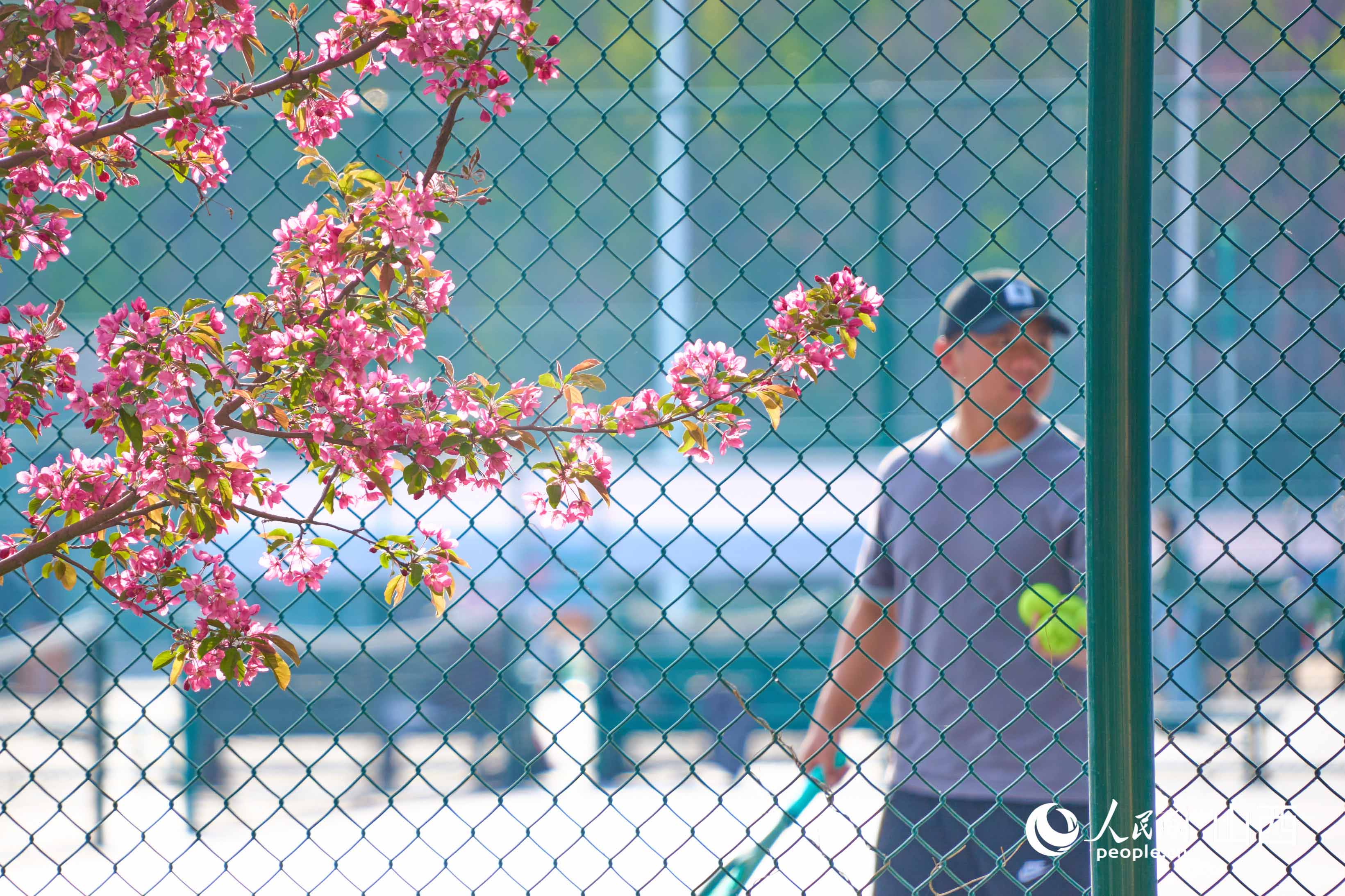 每年四月,校園內白紫雙色的丁香花瑩潤飽滿、香氣撲鼻。雖然一團一簇,但細看起來,花瓣細膩潤澤,花型姣好,每朵丁香都舒枝展臂。海棠花粉嫩花瓣呈簇狀垂掛枝頭,與嫩綠葉片相映成趣,呈現垂絲海棠的春日姿態。隨處可見的春花與校園構成“粉白紫”春色三重奏。