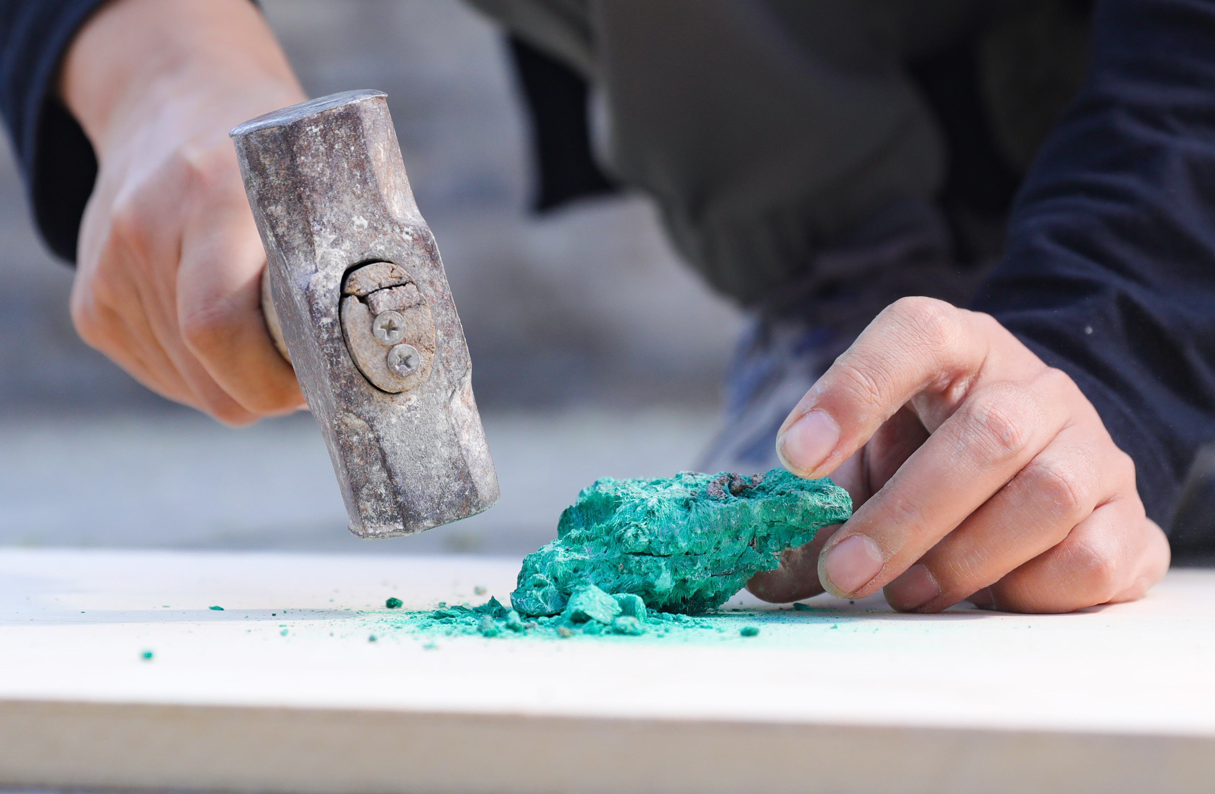 劉子群在手工制作礦物顏料。王帆 攝