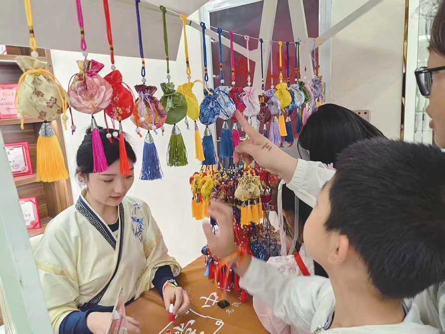 資善堂中醫館第七屆端午文化節上,市民在挑選喜歡的香囊。盧文艷 攝