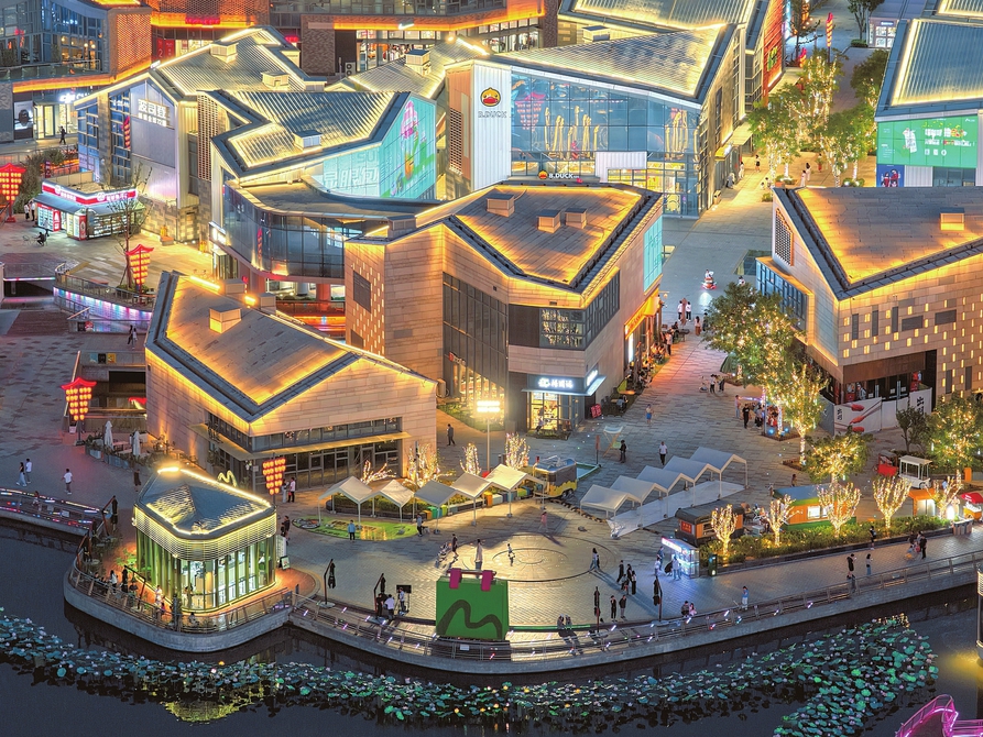 近日,太原晉陽湖畔,晉陽里商圈燈光璀璨、景致迷人。這里集餐飲、文化、購物等多元功能于一體,以時尚韻味與煙火氣息,點亮太原夜間經濟,成為市民游客沉浸式體驗夜生活的熱門之選。(記者王瑞瑞攝)