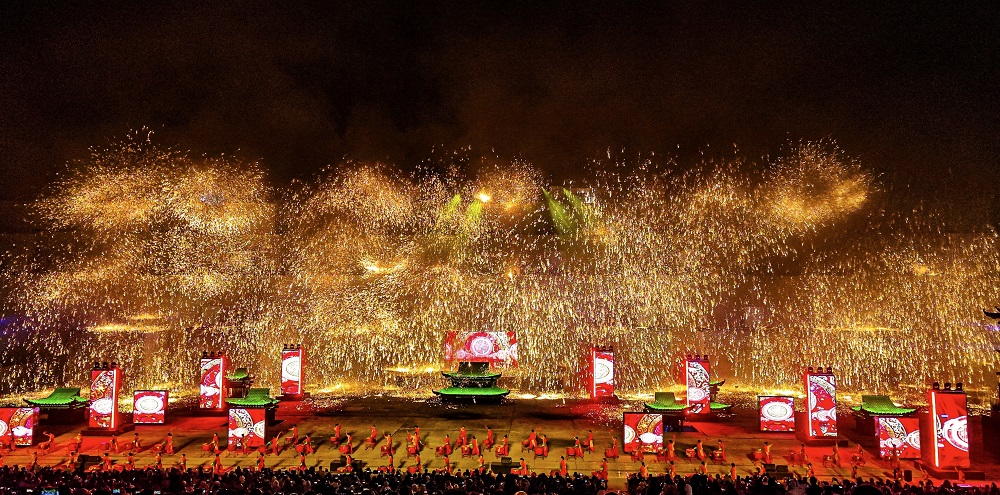 “2015年,我們召集了36位村民,開始在司徒小鎮表演打鐵花,沒想到這一演就把名氣‘打’了出去?!敝苄∶髡f,2017年春節,司徒小鎮打鐵花以《千年鐵魂》大型山水實景劇呈現,而在之后的每一年,不斷加入了神話傳說、民間童謠、舞臺特效等新元素。