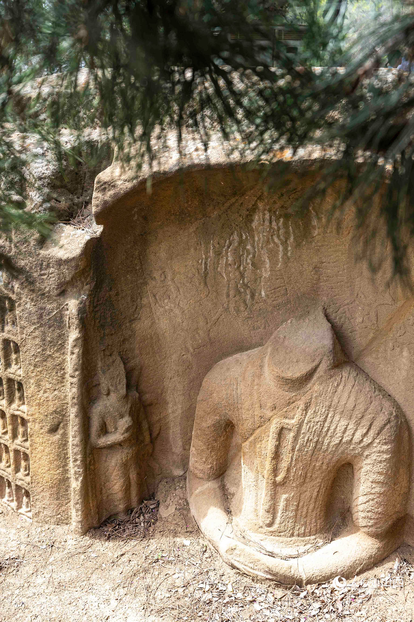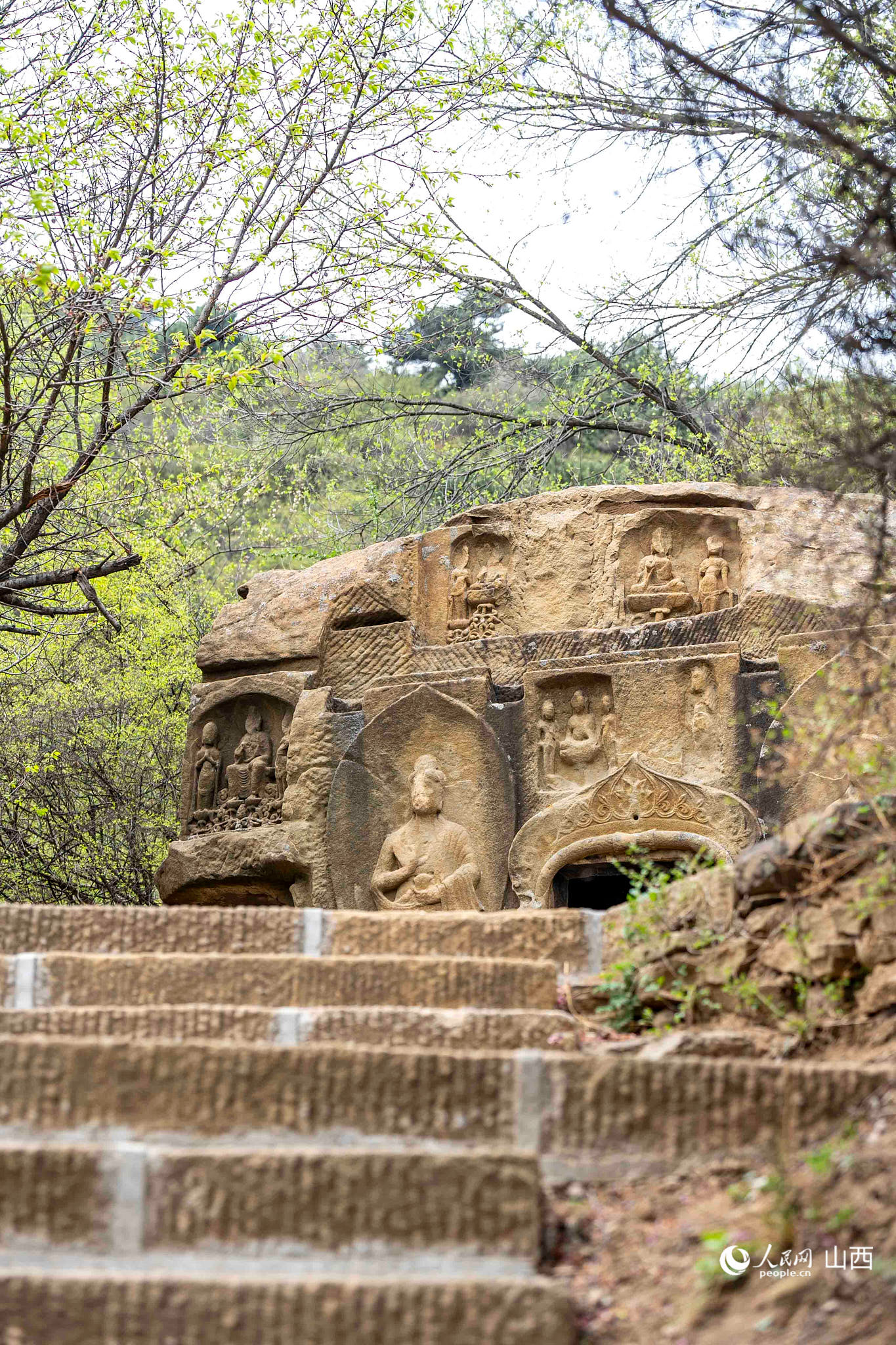 沿羊頭山古道拾級而上,石縫間山花搖曳,仿佛訴說著千年香火。雖同屬山體鑿窟,云岡、龍門石窟多鑿于崖壁,整座山體皆為石窟;而羊頭山石窟則掩映綠蔭,點綴山間,使攀登過程充滿了不期而至的驚喜。