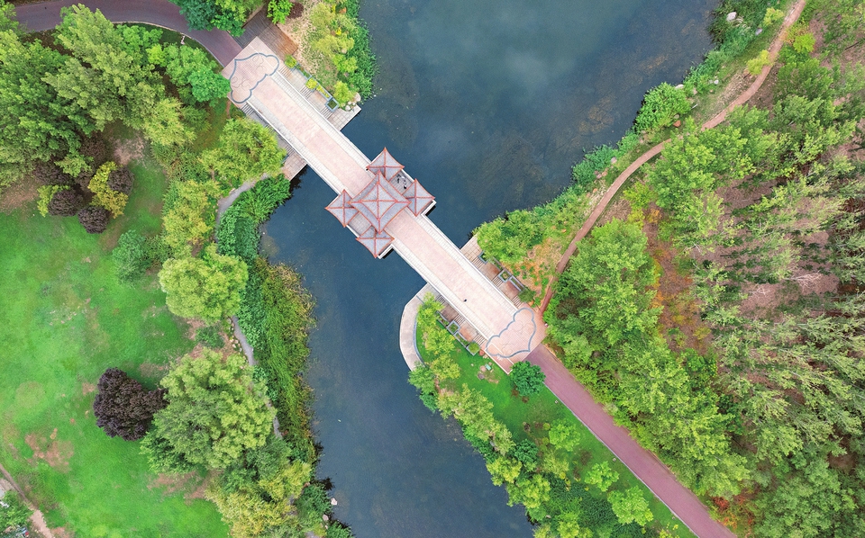 8月10日,臨汾市汾河文化生態景區林木茂盛,景色迷人。近年來,該市加大生態園林城市建設力度,通過實施山水園林、親水平臺等多元化設計規劃,打造城市生態走廊,使其成為市民游客休閑游玩的好去處。(李現俊攝)