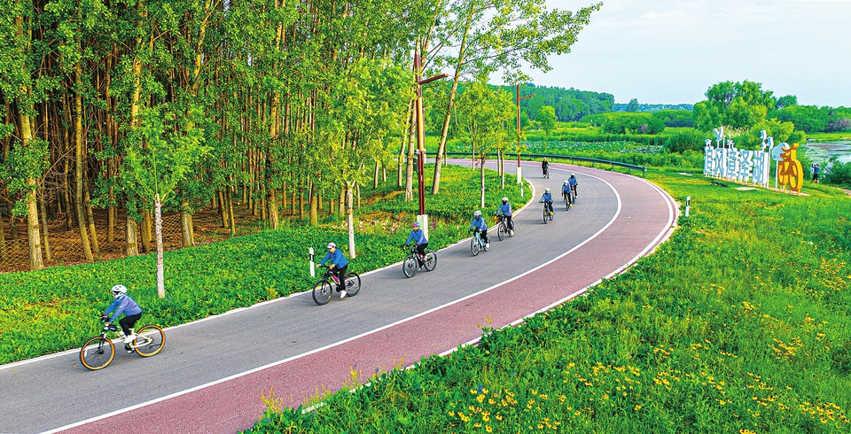 近日,長治市潞州區堠北莊街道張祖村,騎行愛好者在太行一號旅游公路長治段騎行,享受運動快樂。近年來,當地加大漳澤湖生態修復與保護綜合治理,構建水城共融城市空間新格局,不斷提升市民獲得感、幸福感。(郭世虎攝)