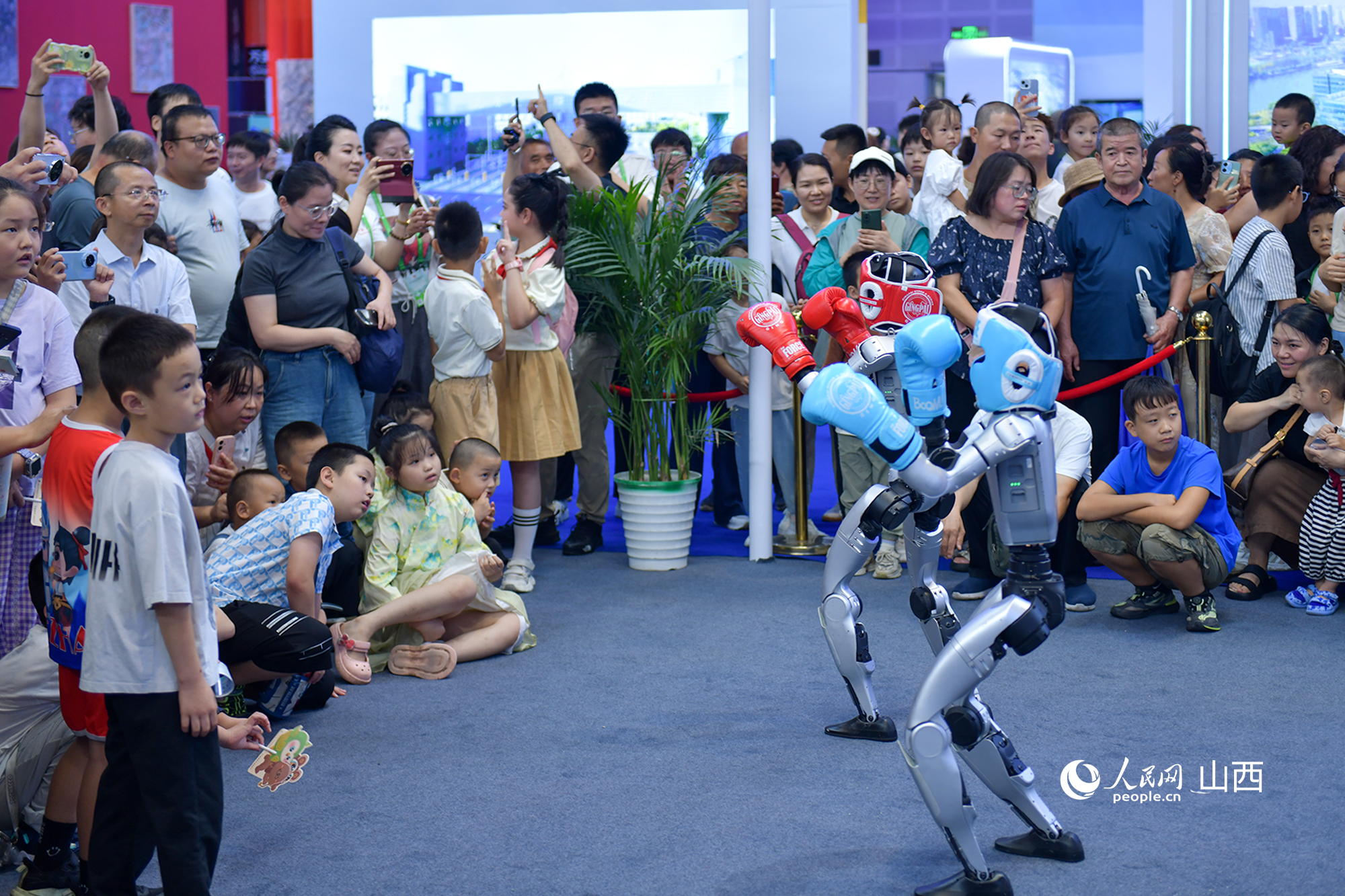 人民網太原8月21日電 (武笑)跟隨仿生機器人逛會展,與“柳宗元、王勃”形象的智能仿生人形機器人面對面對詩,和非物質文化遺產代表性傳承人一起學做木版年畫,打卡山西各地的文創好物……8月21日,第七屆山西文化產業博覽交易會(簡稱“山西文博會”)在山西瀟河國際會展中心拉開帷幕,來自全國31個?。▍^、市)及全球35個國家的近2000家企業齊聚山西,展示各自的文化產業成果。