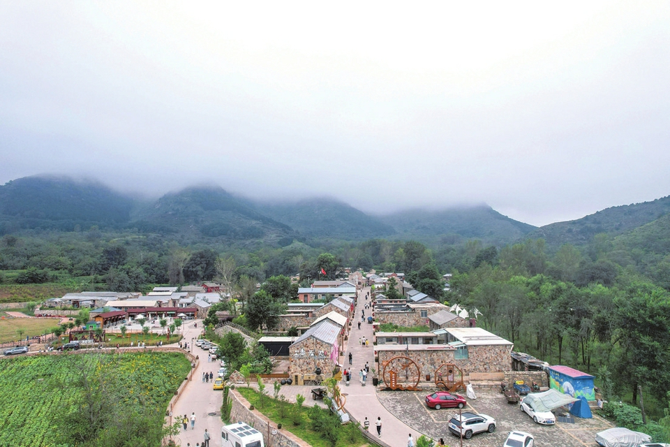 8月29日,游客在和順縣南天池村游玩賞景。群山環抱的南天池村,森林覆蓋率高達82%。太行山斷裂帶在此綿延起伏,勾勒出6.7公里的壯美線條,令人心曠神怡。(杜愛清攝)