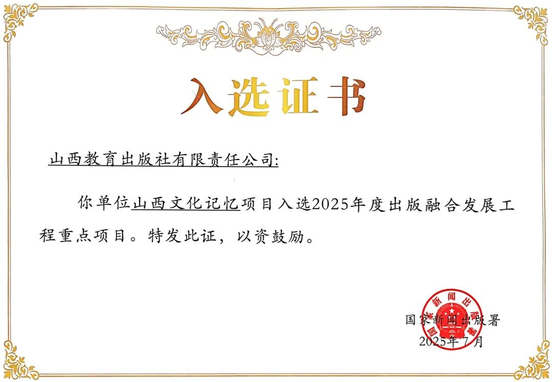 近日,國家新聞出版署正式印發《關于公布2025年度出版融合發展工程重點項目入選名單的通知》,山西教育出版社申報的“山西文化記憶”項目成功入選。這是山西出版界首次榮獲此項國家級出版融合領域最高榮譽,不僅填補了山西在該出版融合工程重點項目中的歷史空白,更標志著山西文化數字化傳播與出版深度融合發展邁出發展新步伐。