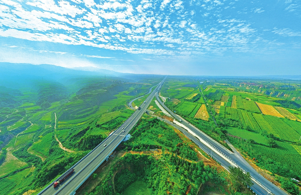 九月八日,襄汾縣新城鎮境內,新改建的國道108線縱貫南北,沿途景色如畫。(李現俊 攝)