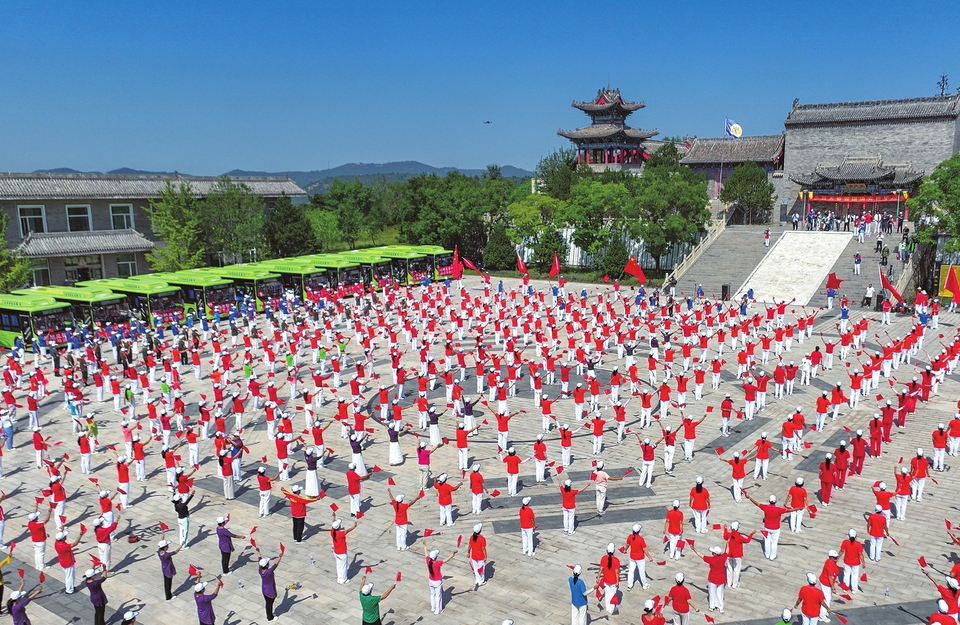 近日,千人廣場舞展演活動在晉中市榆次區烏金山景區舉辦,來自晉中市及所轄各縣(市、區)文化藝術協會的1000余名會員積極參與。會員們在享受跳舞樂趣的同時,還能欣賞到烏金山的秋日風光。(梁生仁攝)