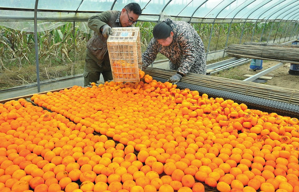 10月23日,萬榮縣漢薛鎮北坡村柿餅加工合作社社員正在加工柿餅。漢薛鎮年產柿子約2500萬公斤,可加工柿餅1800萬公斤,帶動村民穩定增收。(張懷心攝)